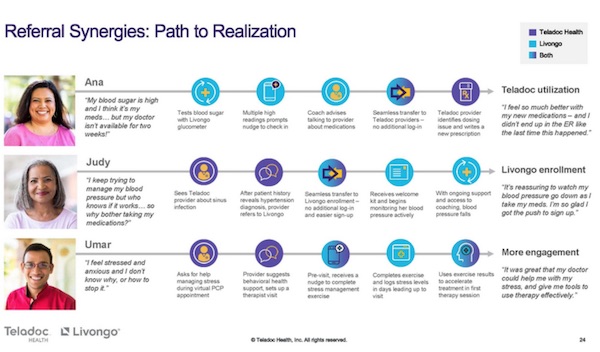 I thought these two slides from the investor presentation helped illustrate the ways Teladoc services could flow into Livongo’s: