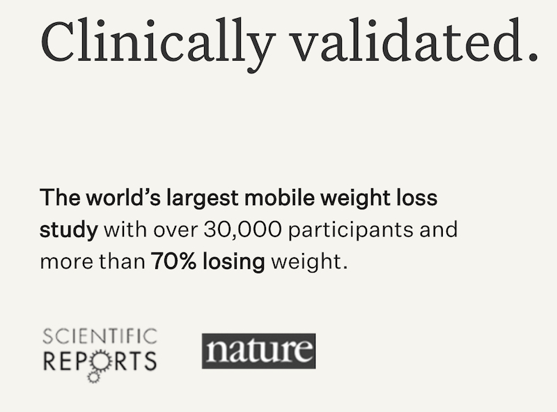 In November 2016 Noom announced the completion and publication of a new study in Nature’s Scientific Affairs that the company described as “the largest of its kind to demonstrate successful weight loss through using a mobile application.” Even now — five years later — this study remains the largest one that Noom has conducted on its flagship weight loss program, and the company continues to use data from it to power claims it makes in most of its marketing materials.