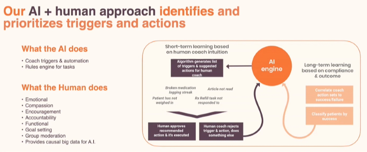 “In 2015 we figured putting human coaches into our big data, AI-blended, mobile platform is working so well. That was our product ah-ha moment. Since then our company grew very fast and we are very thankful. At that time we also attempted to actually distribute our service through renowned payers in the United States and also providers.”